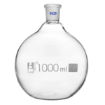 Vidrio borosilicato, parte inferior plana, cuello corto, junta intercambiable. Según la norma DIN ISO 4797. Capacidad. 1000 ml, tamaño de encaje 24/29 D – 131 mm, H – 187 mm