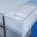 En cada cajón se pueden guardar hasta 13 soportes para portamuestras y tapas transparentes, pedidos por separado.