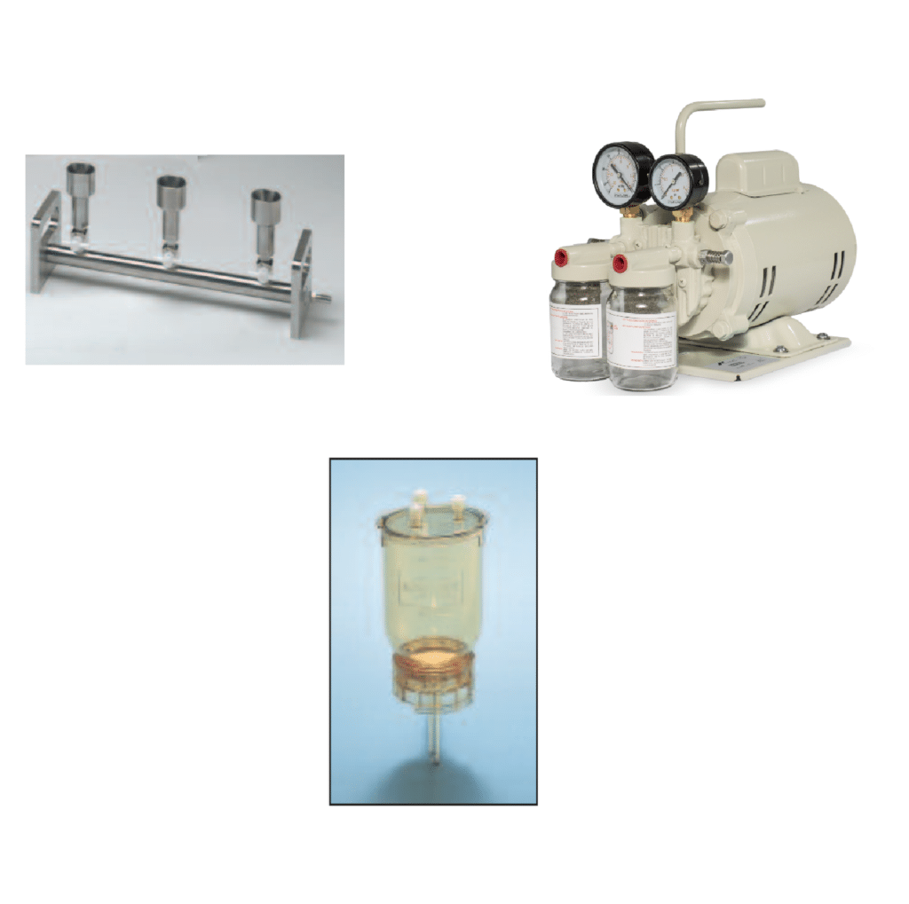 Kit de filtración al vacío Manifold ADVANTEC (USA / Japón) + Bomba de vacío FELISA (México) + Embudos de polisulfona (x3 pcs) ADVANTEC (USA)