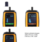 Temtop M2000 es un monitor de mano capaz de medir PM2.5, PM10, dióxido de carbono y formaldehído y temperatura y humedad. Muestra lecturas precisas y resultados instantáneos a medida que cambia el entorno. El sensor Temp & Humi puede ayudarlo a verificar el rendimiento de su aire acondicionado, el sensor de CO2 es adecuado para alguien que vive cerca de áreas de mucho tráfico, incendios forestales o plantas industriales donde hay un nivel grave de humo, o incluso si solo necesita un dispositivo preciso y confiable para medir el interior de su hogar. Además, cuenta con sensor de formaldehído, que es un químico común utilizado en muchos muebles de madera prensada y pisos de madera que afecta directamente el aire que respiramos.