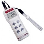Es un medidor portátil de pH, mV y temperatura en tiempo real, de alta precisión y controlado por un microprocesador. Utiliza un conector tipo BNC y acepta una variedad de electrodos para mediciones especiales si es necesario. Cuenta con una pantalla LCD muy amplia que permite la visualización simultánea de pH, temperatura, día y hora. Reconocimiento automático del buffer con estándares ISO pH 7,00; 4,01; 10,01 y NIST pH 6,68; 4,01; 9,18 incorporados. Lectura de máximos y mínimos. Ajuste manual para personalizar el buffer estándar. Cuenta con microprocesador. Especificaciones: pH: 0 a 14; /-0,01 . Milivoltio (mv) y orp: /-999 mv; /- 1 mv. Temperatura de trabajo de 0 a 100 °C /-0,5 °C con compensación automática o manual de temperatura. Calibración automática. Incluye electrodo plástico pH, sensor de temperatura en acero inoxidable, frasco de 90 ml de buffer pH 4 y 7, maletín de transporte y manual de usuario. Opera a pila de 9 v.