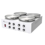 Plato circular de 18 cm. de diámetro de aluminio o de acero inoxidable con elemento calefactor integrado.